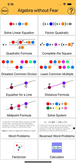 The Algebra without Fear app helps you gain confidence in your basic algebra skills. The app generates an unlimited number of problems of various types, so you can practice: