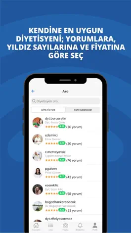 Hedefini belirle ve sana en uygun diyetisyeni bul. Sana özel oluşturulan diyeti uygulama üzerinden takip et, beslenme günlüğüne öğünlerini ekle, hedeflerini ve güncel durumunu grafiklerle anlık olarak takip et ve diyetisyeninle paylaş. Böylece hedefine giden yolda motivasyonunun hep yüksek olmasını sağla.