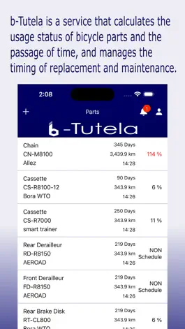 b-Tutela is a service that calculates the usage status of bicycle parts and the passage of time, and manages the timing of replacement and maintenance.