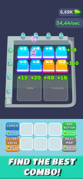 A puzzle game for your mind, and your hunger for riches! Do the math and use your wits for better combination of buttons.. Spend your money to buy more and better buttons, place them on the grid to earn more. As balls jump over these buttons, their worth increases. The order in which you place the buttons matter a a lot! Merge the buttons for even higher income, and spend wisely. Be smart about how you use the board.. Have fun!