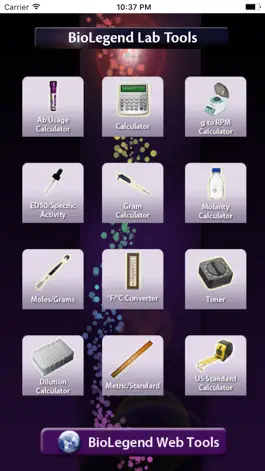 Welcome to the BioLegend Lab Tools application. This app is full of calculators and converters that should come in very hand in the lab or in the classroom. We have included the following calculators: