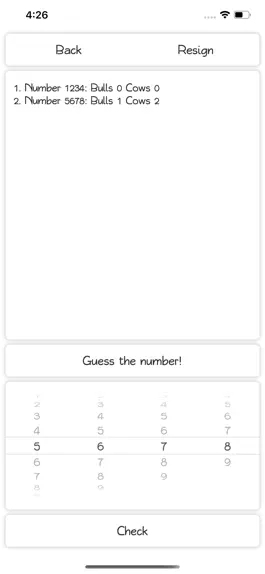 Bulls Cows is a number guessing game. In some countries is played with colors or words but in this version you must break the code with numbers. At the start of the game your device generates a random number. You must guess that number. Every of your choices gives you Bulls and Cows. Every Bull is a guessed digit in the original number and every Cow is a guessed digit but misplaced. For instance if the random number is 259 and you guessed 329, result is 1 Bull (digit 9) and 1 Cow (digit 2). Try different difficulties and enjoy!