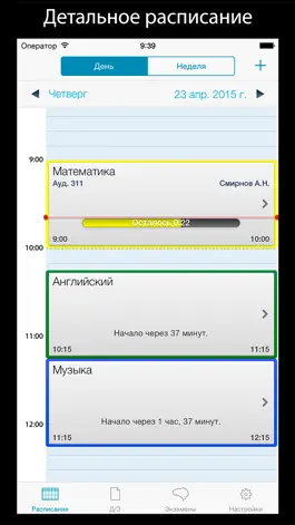 Сразу после запуска приложения, предстоящий урок будет отображен с необходимой информацией. Поверните девайс в альбомное положение чтобы увидеть расширенную информацию расписания.