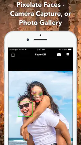 Using face recognition technology, Face-Off will identify faces in your captured or loaded images. Tap on a face to pixelate it. Adjust the level of pixelation. Simple and easy to use.