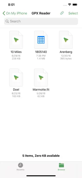 For this version of GPX Reader I updated all the icons so that they would be perfect on the big iPhones. And while doing that I made some small design changes to the folder view in order to better display the difference between a GPX/TCX file and a folder.