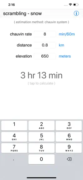 GuidePace consists of three calculators for estimating travel time in different types of terrain. You enter a rate, distance and elevation change, and it will estimate your travel time.