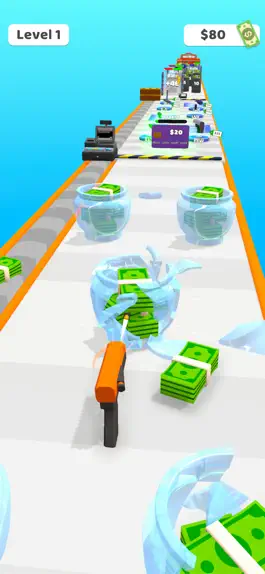 Break the glasses filled with cash and earn money. Purchase new parts of your weapon and upgrade it. Better guns need more money!