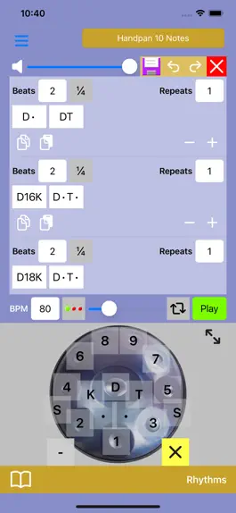 Using this app you can write your own Handpan rhythm with simple notations and hear how it sounds like with a virtual Handpan!