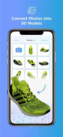HoloNext 3D Scanner app allows you to create your own 3D models from photos. Select photos from your gallery and create your 3D models automatically. With the HoloNext seamless Augmented Reality (AR) cloud platform, you can also view and share your 3D models in AR mode through mobile and Web browsers.