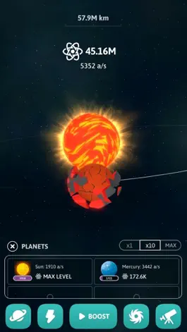 In IDLE UNIVERSE, you will create planet from a meteorite. Sun, Mercury, Venus, Earth, Mars, Jupiter, Saturn, Uranus, Neptune, you will have the entire solar system.