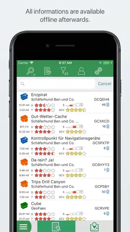 This version contains the function that has been requested most often recently: Loading and modification of lists created on geocaching.com. With this feature you can e.g. arrange caches for a tour online and then transfer them very easily to your phone. Or simply put the caches in a todo list on the iPad and update them on the iPhone.