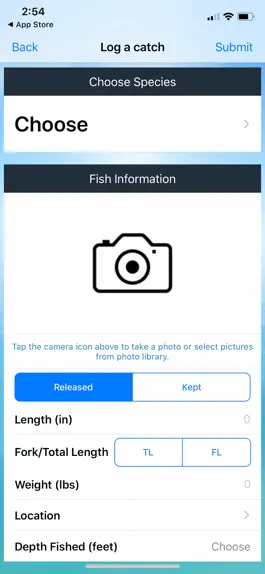 - Angler selection of "Reason for Release"