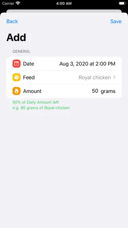 With the help of this app you can not only save the feeding history, but be notified about how much of the daily nutrition goal is left or see an overeaten amount.