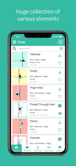 Never forget the name of a figure again! A mobile app that makes every aspect of pole dance training easier. Watch video tutorials, read instructions step by step, mark your favorite moves and track your progress.