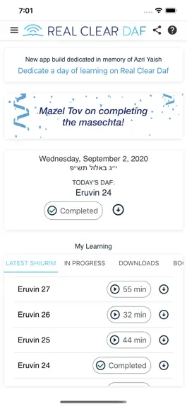 - Track your lifetime learning progress through Shas