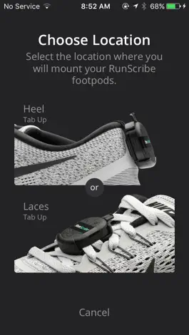 • Configure RunScribe for mount (heels or laces) and location (left or right shoe)