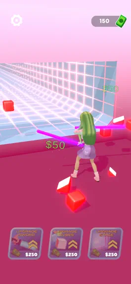 Upgrade your character. By increasing the saber length, cube level, and environment, you'll earn more money faster. You've got to spend money to make money.