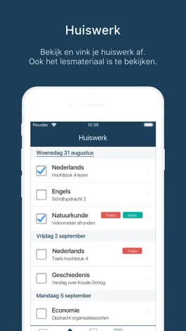 Bij huiswerk wordt een tijdsindicatie getoond als deze is toegevoegd door de docent. Zo weet je hoeveel tijd voor een taak of toets staat.