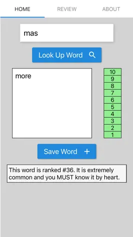 That is where this dictionary app enters the picture. We have ranked and recorded the top 50,000 most common words in the Spanish language being used today. Every time you look up a word in this dictionary app, you are also presented with the word's exact frequency and a visual bar showing the word's frequency rank.