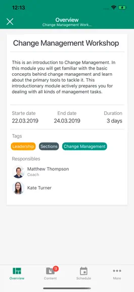 Finally, we've added the ability to start a Zoom call from within the app. Launch Zoom directly from your module overview!