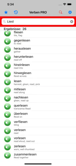 • Im "Verlauf" werden die Verben angezeigt, die Sie aufgerufen haben.