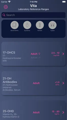 Vita - Lab Values app provides an unprecedented experience in viewing laboratory reference values. It is a comprehensive library of medical laboratory tests with description, explanatory text, indications for increased/decreased lab test values, critical values (where applicable), US/SI unit system support, and collection tube color-coding references.