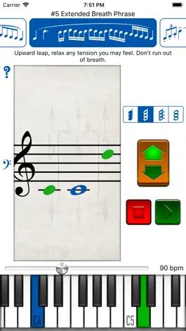 Pick a starting note either from the keyboard or musical staff in treble or bass clef. The range of the exercise will be displayed with green notes / piano keys.