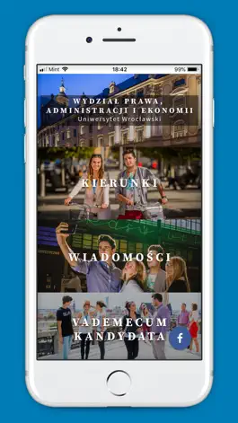Aplikacja dostarcza kandydatom na studia wszystkich użytecznych informacji dotyczących realizowanych na Wydziale programów studiów, renomowanego Uniwersytetu Wrocławskiego, tętniącego życiem Wrocławia oraz ekscytującego życia studenckiego. Aplikacja zawiera sześć funkcjonalności: