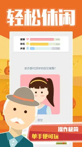 《大爷模拟器》游戏操作十分简单,只需用拇指向左或向右划动卡牌,以做出不同的选择,推动故事发展。不过请留意您的属性值,当属性值为零时,游戏便告结束。《大爷模拟器》极易上手,休闲有趣,但却充满挑战。