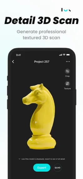 Formats: Exports in various formats, including OBJ,STL,FBX,GLTF,GLB,USDZ,USDA,PLY,XYZ,which gives you the versatility to seamlessly integrate 3D scanning into your workflow
