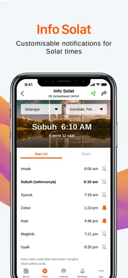 Customisable notifications on Solat times throughout the day