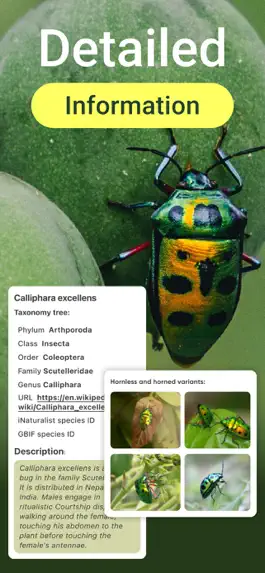 At the moment app features an extensive database of over 1000 insect species, including butterflies, ladybugs, beetles, grasshoppers, and more. Each species is accompanied by detailed information about its habitat, geographic distribution, life cycle, and scientific classification. You can even browse through high-quality images to help you identify each insect.