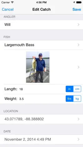 Catch allows you to create a custom list of anglers so you can record fish for your group of friends or your family. Catch also include a preset list of fish types for both fresh and salt water than can be customized to suit your needs.