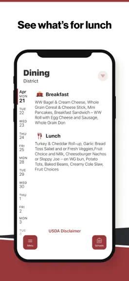 Within the dining section, you'll find an easy to navigate, weekly menu, sorted by day and meal type.