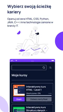 Wybierz swoją ścieżkę karieryOpanuj od zera HTML, CSS, Python, JAVA, C++ i inne popularne technologie i języki programowania. Zdobądź umiejętności potrzebne do pracy i zacznij budować swoją karierę w IT.