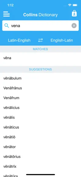 • Search autocomplete helps you find words quickly by displaying predictions as you type.