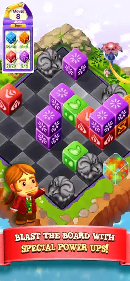 Along the way, meet your cute and helpful allies who aid your progress with exciting, new, power-ups. Strategically blast rows, explode cubes, and destroy all obstacles in your path.