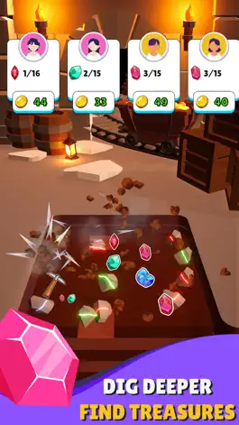 This game is simple, easy and addictive. I really love "gathering" and stuff like opening chests or looting in games and gathering gems has a nice similar feeling. I think the gameplay is easy enough that it isn't frustrating and annoying to play. I think it's designed well enough too, the interface is easy to use. However i have a few issues too. I can't open my bag to see my inventory, when i tap it it glows the icon up but it never opens. I also can't adjust the volume anywhere. I like the digging sound but not the sound of tapping the shovel. It's really loud too. I also see gems coming out when i pick them open but the count of those gems doesn't go up for the "customers" on the screen who give you coins. So im at 12/16 morganite, i visually see 4 more morganite and they don't show up. The count doesn't go up. And i can't check my inventory. So that makes me feel like my progress is being thwarted. I also wish it was easier to tap the shovel, it's hard on my wrists to hold my hand so close to the bottom of my phone. Overall it's a fun game i enjoy opening up whenever i need something relaxing and easy to play to enjoy some free time. I hope they will fix some of these issues and also give the customers a little more detail, i think it would be fun! Like giving them names or something to color them out a bit more.