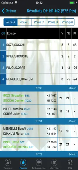 - Les sorties de poules sont affichées 10 mins après la fin des matchs pour laisser le temps aux JA de les valider