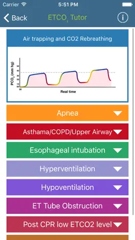 The ETCO2 app helps develop the knowledge about ETCO2 and various capnographs, and can be a useful tool for learning. The App shows the graphs for Apnea, Hyperventilation and Hypoventilation. It also shows capnographs for various medical conditions which are encountered treatment.