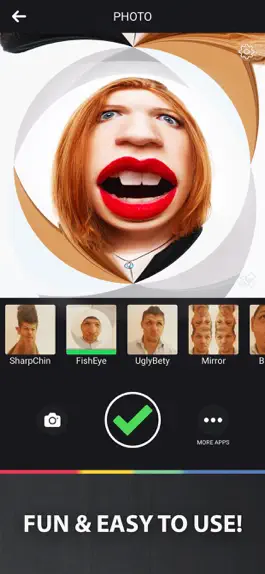 Download Funny Camera for Instagram™! This funny photo editor will make you laugh out loud! Thanks to Funny Camera, boring pictures are the past! This funny photo editor will turn those boring faces into funny faces. You can also make hilarious pictures of your dog or some other pet. Take a photo of your best friend but don't forget to set the fish eye effect. Or, try various photo effects as you are taking a photo and laugh at the funny pictures you create. Try it now, edit photos and watch how popular you're getting!