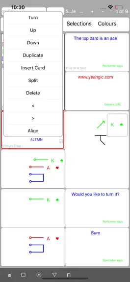 1. The 'Context' menu's overlays for 'Place' and 'Direction' were redesigned and combined. The new 'Place' option allows to specify overlays indicating Palm, Hand, Pocket, Wallet and Case. The 'Direction' is option is deprecated. These changes make it much easier to describe actions related to palming, pocketing, and placing cards onto, into, or below card cases or wallets.
