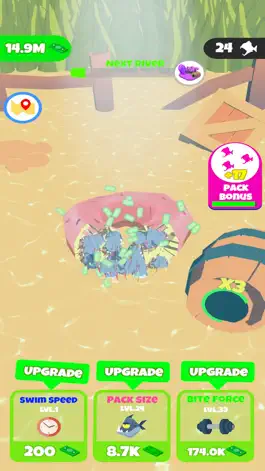 Explore new rivers to tear apart bigger foes and take control of what was yours. Start with small food and work your way up as your piranhas get stronger and faster leaving nothing in their path but mayhem. Earn money to buff up your pack and become the most vicious living things in the river.