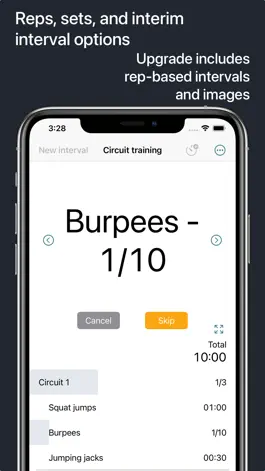 Intervals that are not time-specific can now be created as part of the upgrade features. Use the navigation buttons to move through reps or the "Skip" button to move on to the next interval.