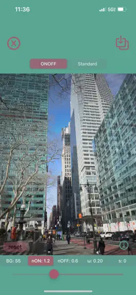 The first method, standard, applies a gamma correction. In this method, you can process the image by adjusting its gamma correction, mean, and saturation. The other method, ONOFF, is our custom method that involves adjusting a weight, alpha value, an off beta value, an on beta value, and a saturation factor. This method is closely related to what our eyes see, and was based on the biological functions of sight.