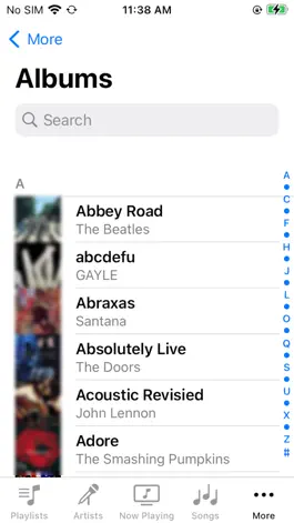 JH Music Player is for everyone who prefers to have their music locally and sync their devices - organizing and labeling how they want. Tabs at the bottom are arranged logically based on Playlists, Artists, Albums, and Songs, and pulled directly from the media that has been synced with your device. Items can be searched and played. Double tap artwork to rate each song. As simple as it could be.
