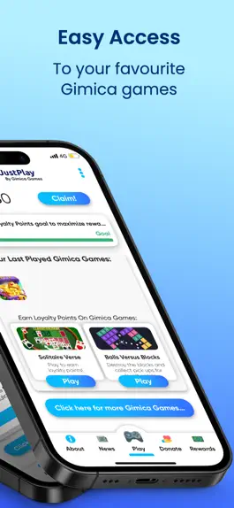 But it's not just about rewards. JustPlay is the only gaming loyalty program that lets you give back to the world. Choose to donate your earnings to major charities like The Hunger Project, Doctors Without Borders, and Clean Air Force, among others. For every donation you make, Gimica matches it, doubling your impact.