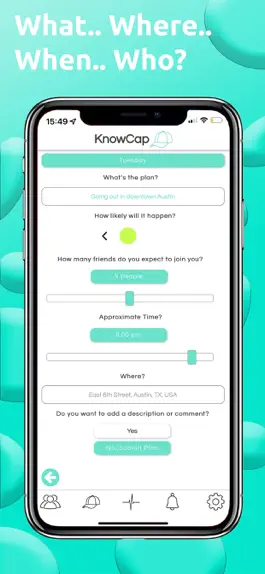 At KnowCap our objective is to create real-life connections between people. Our higher-level needs for genuine, real-life connections are not being met. Knowledge about the future is scarce. If an individual wants to know what a friend is doing, they have to reach out and ask them. Why do that when you can see what all your friends are planning to do tonight in one centralized location?