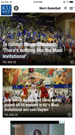Nobody covers University of Kansas sports like the staff at KUsports.com and now, all of the KUsports content is free to all via the KUsports App. Everything a Jayhawks fan could want in a free app — stories, blogs, videos, scores, schedules, context and analysis from the awarding-winning KUsports team.