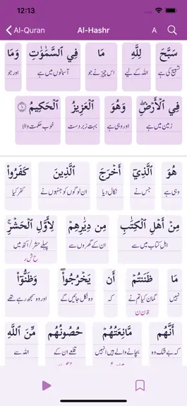 § Tap on any verse and press play button to listen to its audio translation, tafsir or recitation